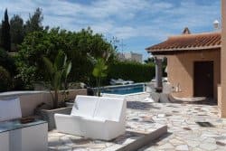 Villa located in Can Bellotera, just 3 km from Ibiza Town. The house maintains privacy thanks by a big garden surround its, entering you can see wonderful trees, a garden with typical plants from Ibiza.You can chill on a wonderful patio with views of the main garden and the pool, there’s also a chillout area with sun beds for a break under Ibiza’s sun.
