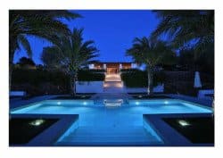 Nestled in the island's center and just a stone's throw from popular attractions, Can Cantó Ibiza is perched on a hill, enveloped by 3,200 square meters of lush Mediterranean gardens. This exquisite location offers breathtaking views of both the countryside and the forest, alongside a spectacular nighttime vista of D’alt Villa.